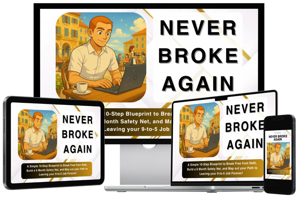 Get FREE Access To “Never Broke Again" & Discover The Exact Steps To Break Free from Debt, Build a 6 Month Safety Net, and Map out your Path to Leaving your 9-to-5 Job Forever!